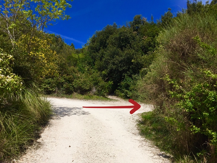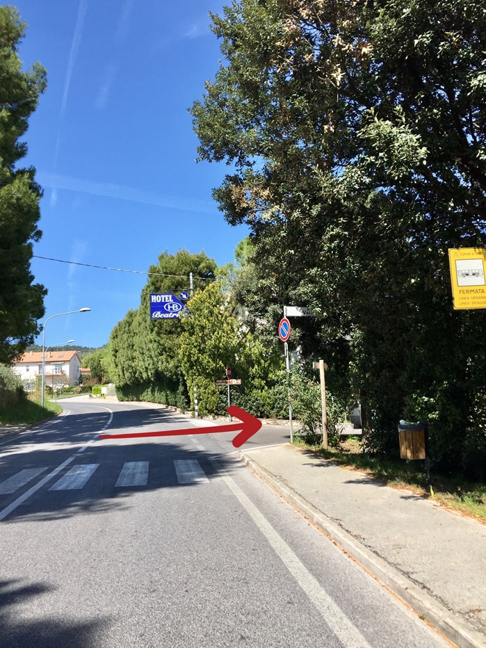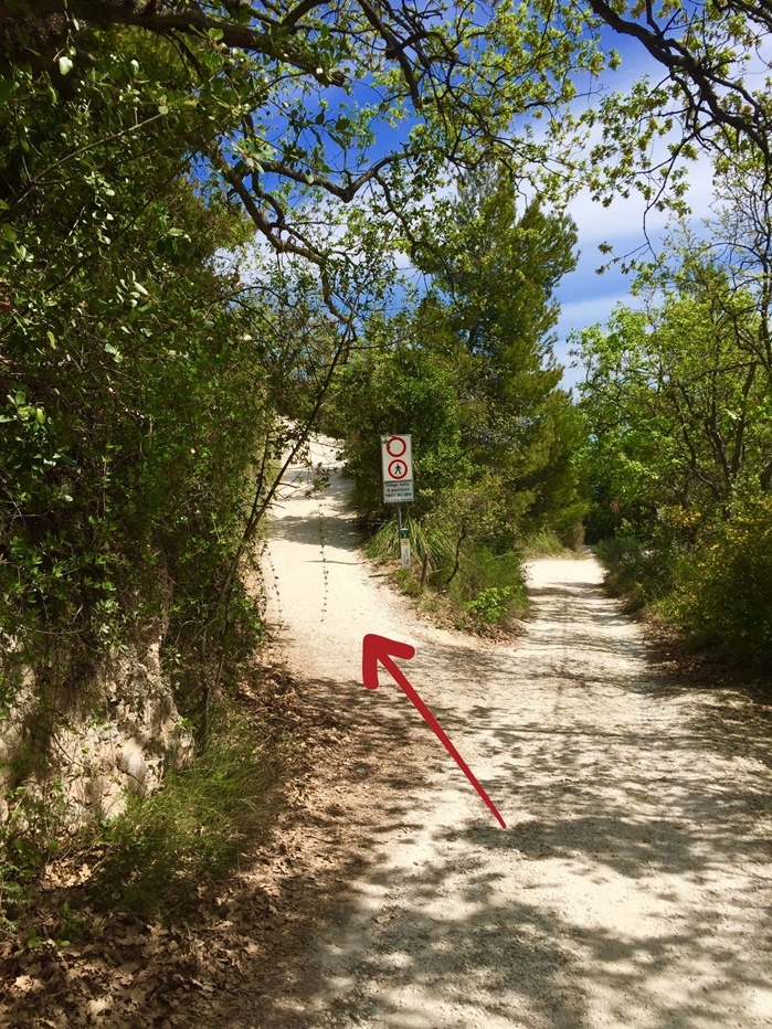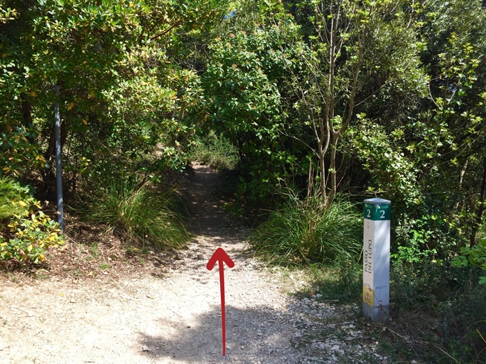 7 Girare a sinistra,prendere le indicazioni sentiero n.2 del Parco del Conero.- Turn left, follow the signs path number 2 of the Conero Park.
